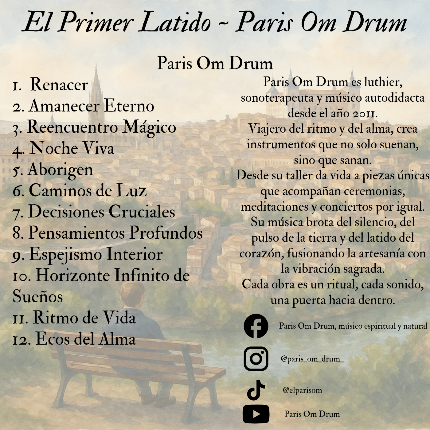 El primer CD de Paris Om Drum no es una celebración de los 14 años transcurridos desde su creación, sino una evocación del instante inicial que marcó todo lo que seguiría. Este disco es para aquellos que aprecian el arte y la autenticidad. Cada nota y cada melodía están impregnadas de la pasión y la dedicación que caracterizan el trabajo de un luthier que lleva la música artesanal a otro nivel.